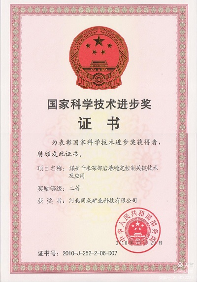 2007年,公司化学注浆技术项目获得河北省科技进步奖。